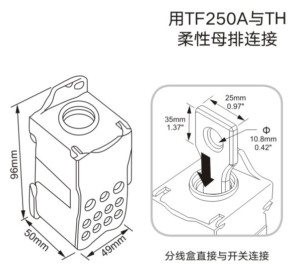 柔性母排可用平型接頭插入連接(TUKK250A & TUKK400A)