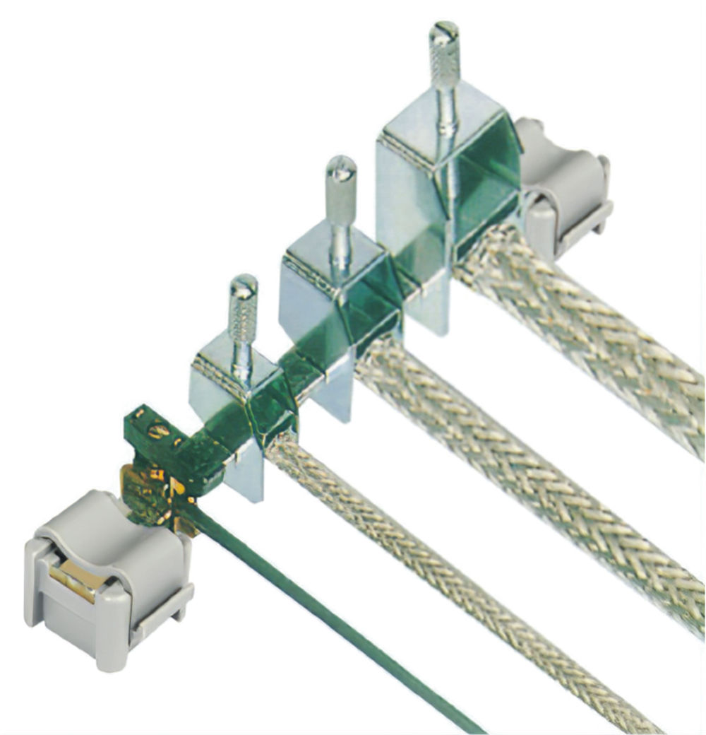 作用在電纜上的力可通過一彈性壓塊來調(diào)節(jié),由此可隨時(shí)保證與匯流條的最佳接觸。如果電纜屏蔽不是在端子條前,而是在電氣柜的另一個(gè)地方接地,在此種情況下,推薦使用屏蔽支座AB/SS。如果需要將電纜屏蔽通過設(shè)備外殼的某一點(diǎn)接地,這種屏蔽支座也適用于匯流條的絕緣安裝。