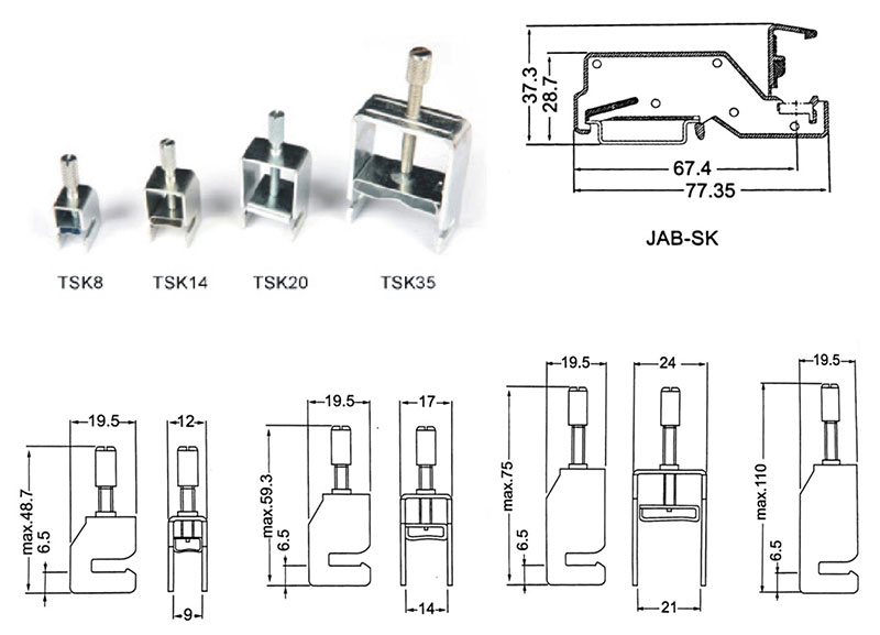 | 屏蔽接線端子: 用于匯流條上夾緊電纜的屏蔽層 屏蔽支架: 可安裝于 型導(dǎo)軌上,適用于10x3mm的匯流條 | TSK 8 | 2011001 | Φ8mm | 10 | |