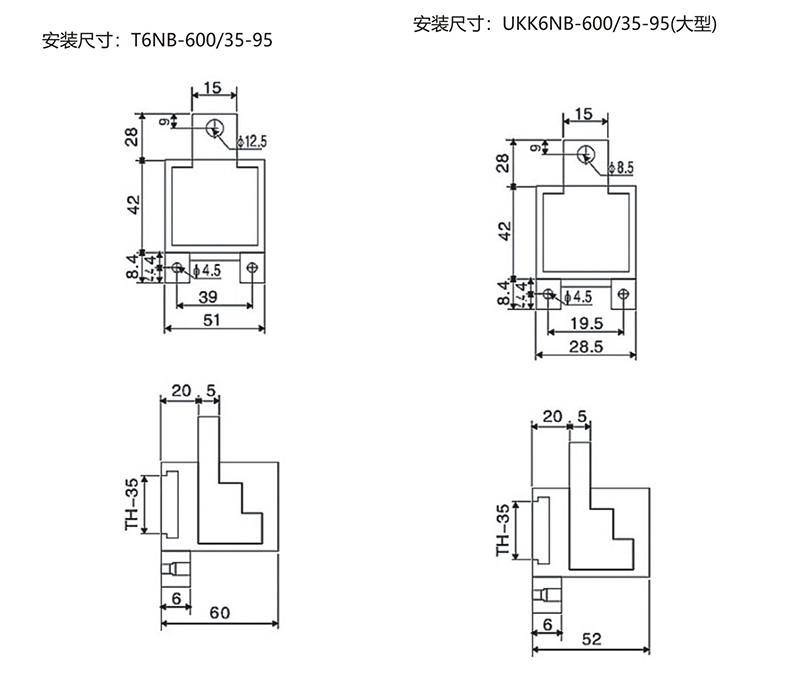 | TK6NB-600 /35-95/ 2x25 | 4012113 | 35-95mm2 | 1.5-25mm2 | 一路進(jìn), 二路出 |