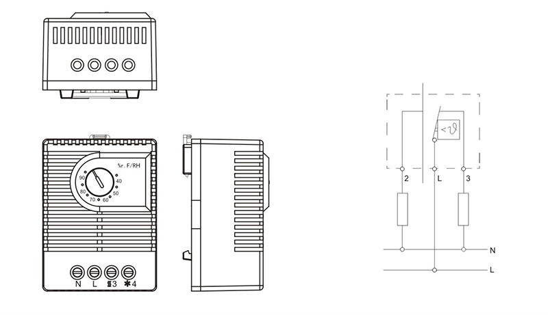 機電式的濕度控制器用于在相對濕度超過65%時,通過控制加熱器提高柜內(nèi)環(huán)境溫度,從而避免潮濕和腐蝕的發(fā)生。