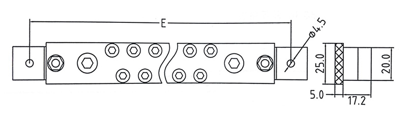 匯流排5x25有電鍍,電流容量375A,安裝孔直徑Φ6可任意分割