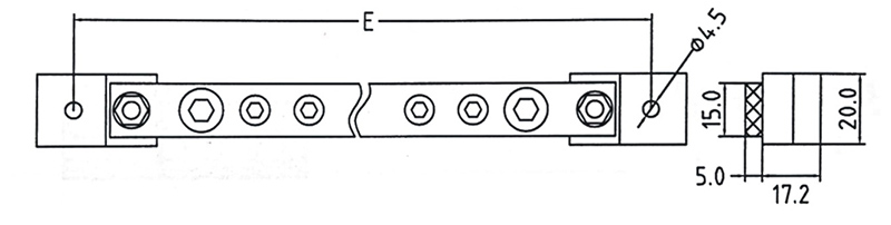 匯流排5x15電鍍銅排,電流容量225A,安裝孔直徑Φ6